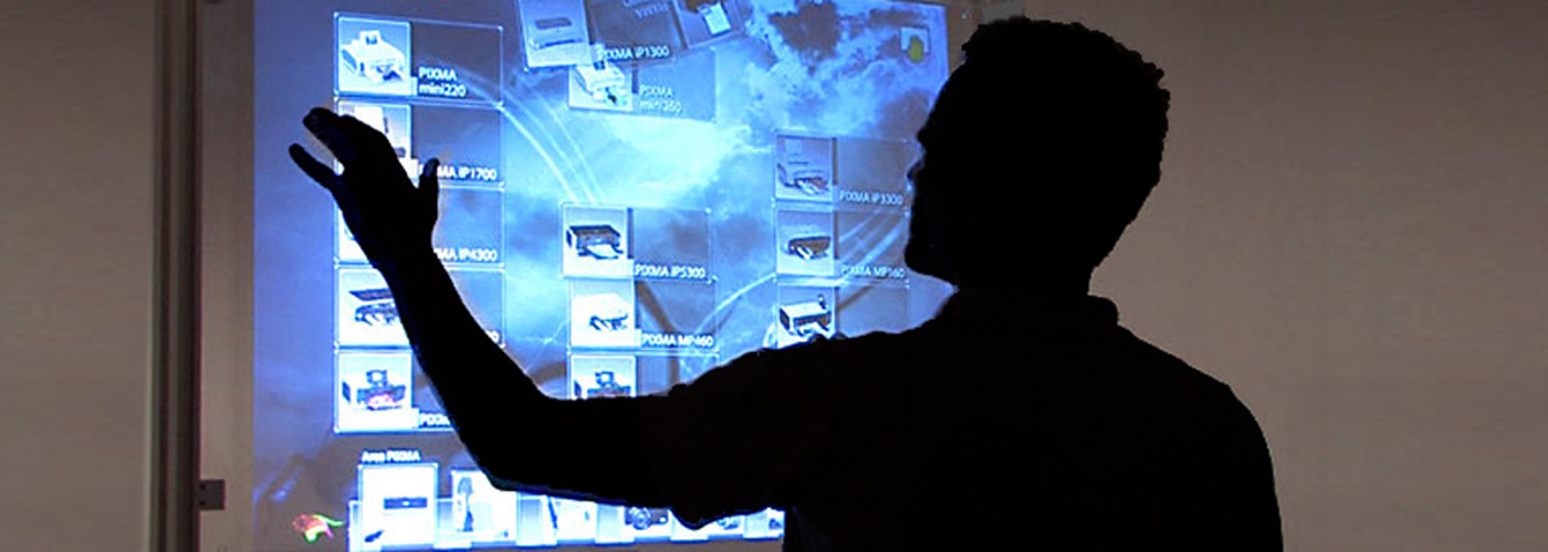 TouchVu Filmはデジタルサイネージ(Digital Signage)に最適で、インタラクティブなコミュニケーションツールとしての活用が可能なタッチセンサーシステムです。モニターやスクリーンの表面を指でタッチすることで、表示されているコンテンツをスマートフォンやタブレットのように操作することのできるシステムです。